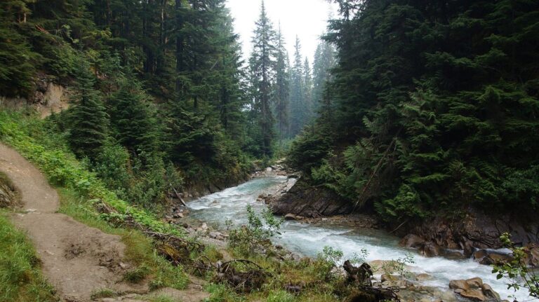 Bear Creek Falls is a secluded and enchanting waterfall located in the stunning mountainous terrain of British Columbia, Canada. Surrounded by lush forests and steep rock formations, this hidden gem offers visitors a peaceful retreat and an opportunity to connect with nature. The falls are located near Glacier National Park and offer a short but scenic hike perfect for visitors of all ages.